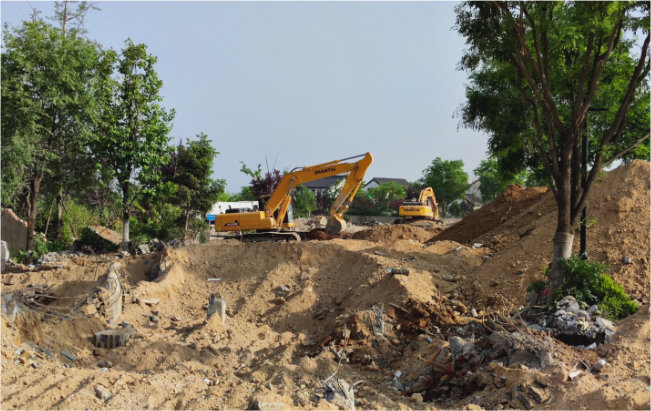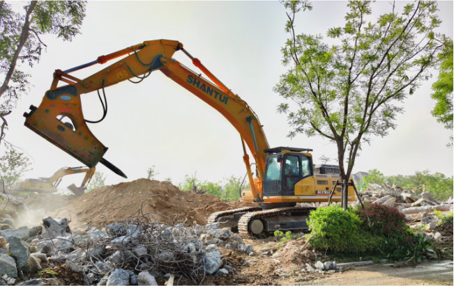 山推挖掘机机群助力拆迁施工