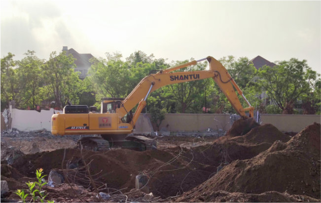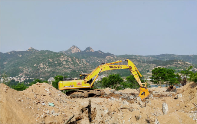 山东某地违章建筑群拆除施工,施工工期短、进度急,二十四小时连续作业,山推数台挖掘机参与施工。多种品牌挖掘机同台作业,山推挖掘机机以动力足、质量好、效率高、故障率低得到施工方认可。