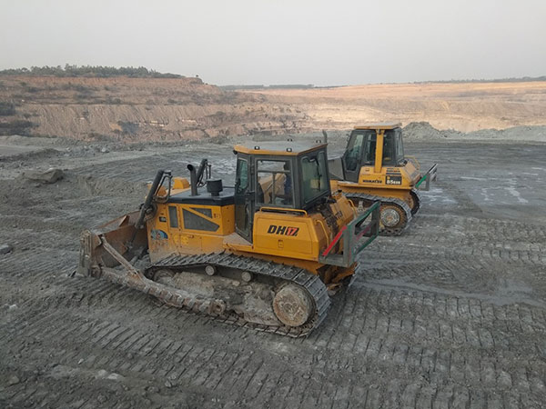 山推DH17推土机在印度某大型露天国有煤矿施工,该矿多岩石及土夹石工况,主要用于露天采煤工作平台回填,以及爆破后采煤作业平台碎石平整清理和短距离推运等工作。工作强度大,三班倒每天工作15小时以上,环境温度高,工地温度高达50℃,持续约3个月。