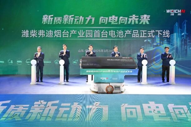 山东重工旗下潍柴弗迪烟台产业园首台电池产品正式下线
